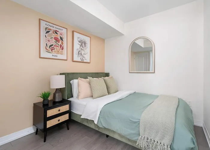 Das 60 m² große Chic 2Br Condo Toronto Core Steps To Eaton Centre befindet sich im Stadtviertel The Village von Toronto, lediglich 6 Minuten zu Fuß vom FreshCo entfernt. Das Apartment bietet eine Terrasse und liegt in einer 600 Meter Entfernung vom Dundas Square.